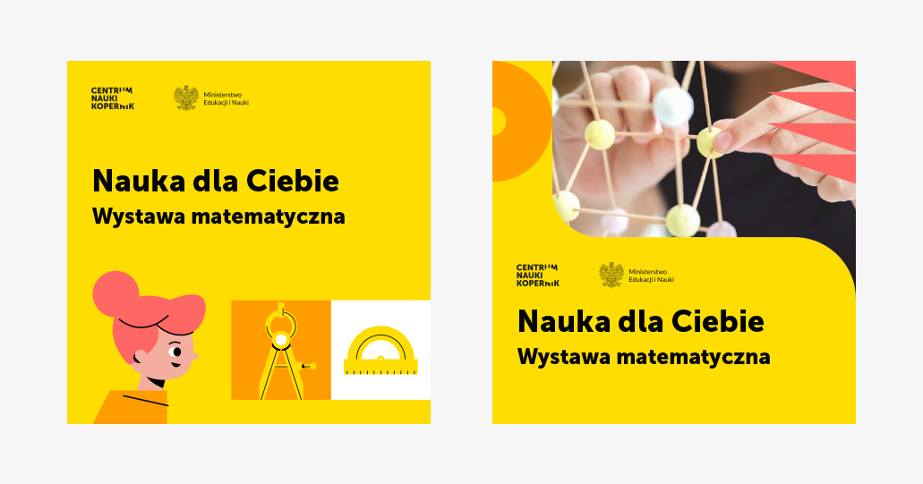 Projekt identyfikacji mobilnej wystawy "O matmo!" to kontynuacja linii graficznej programu Nauka dla Ciebie.