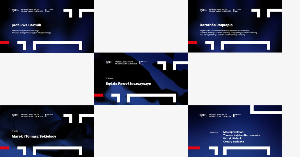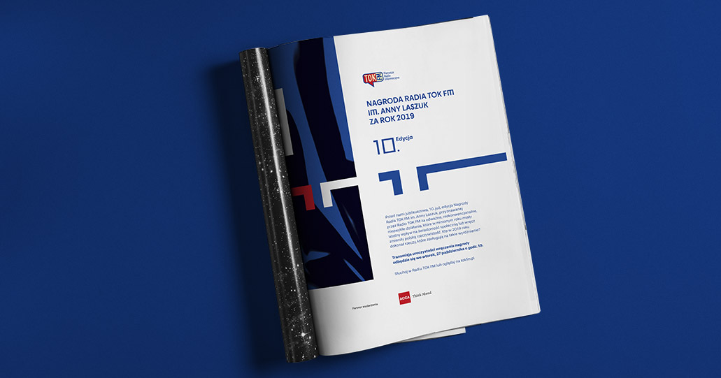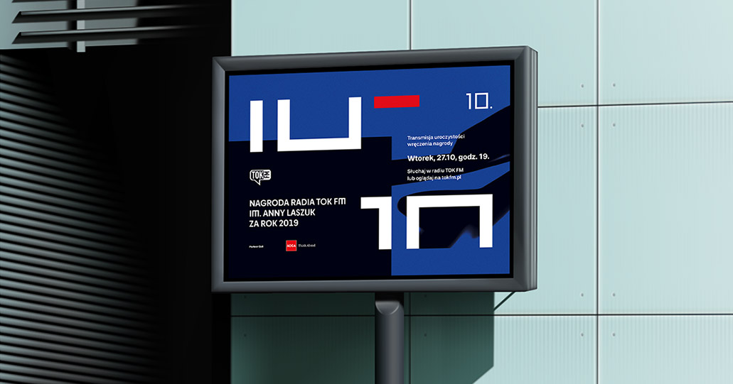 Zaprojektowałam identyfikację wyjątkowej, bo jubileuszowej 10 edycji gali TOK FM. Po raz pierwszy gala odbyła się w formule online. Byłam odpowiedzialna za koncepcję graficzną, przygotowałam materiały promocyjne oraz animację.